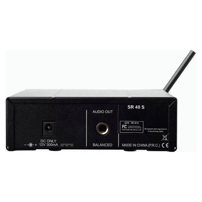 Приймач SR40 Mini з комплекту AKG WMS40 Mini Instrumental Set US45B забезпечує кристально чистий звук. На його корпусі розташовано три світлодіоди стану, що показують стан увімкнення, потужність сигналу, що приймається (RF OK), і кліпінг сигналу (AF CLIP). На металевому корпусі ресивера розташовано регулятор гучності та велику безшумну кнопку ввімкнення/вимкнення для захисту під'єднаних акустичних систем. SR40 Mini оснащений одним симетричним (балансним) виходом на роз'ємі 1/4" Jack. Універсальне імпульсне джерело живлення, що входить до комплекту, працює з напругою від 120 до 230 Вольт.