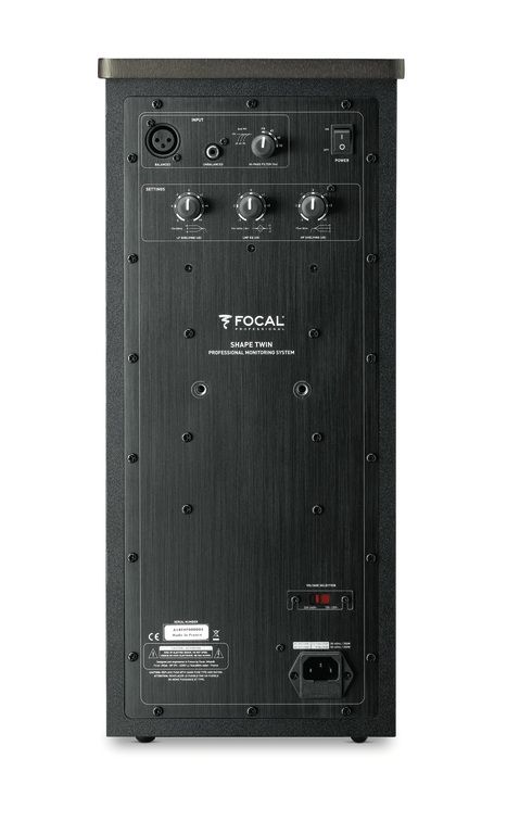 Активний студійний монітор Focal Shape Twin оснащений двома НЧ-динаміками діаметром 13 сантиметрів, при цьому кожному з них надано свій пасивний радіатор діаметром 21 см, розташований на бічній панелі монітора. У кожній колонці є два аналогових входи, організованих на RCA і XLR. Потужність вбудованих підсилювачів у класі АВ становить 50 Ватт для високочастотної секції і 80 Ватт для баса. Вхідний опір становить 10 кОм для обох входів, при цьому для несиметричного підключення передбачено підстроювання чутливості. Розміри Focal Shape Twin - 478 x 211 x 279 міліметрів, вага однієї колонки - 11 кілограмів. Усі моделі серії Focal Shape виробляються у Франції.