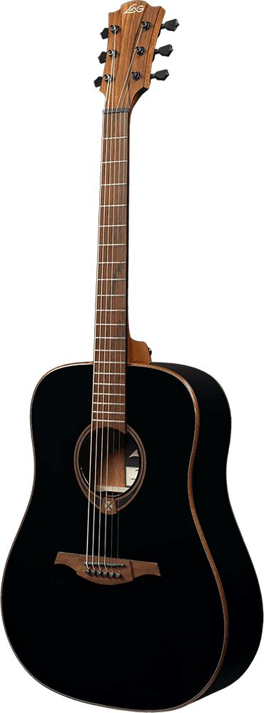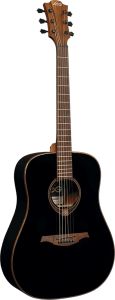 Lag Tramontane T118D-BLK - це шестиструнна акустична гітара в корпусі дредноут. Ця модель має елегантний зовнішній вигляд, а найголовніше, чудовий звук, що досягається завдяки поєднанню цільної деревини червоного кедра (верхня дека) та африканського сапеле (обичайки і нижня дека). Гриф зроблений із тропічної хайї та має якісну накладку з коричневого дерева. Голова грифа і бридж також виконані з коричневого дерева. Верхній і нижній поріжки зроблені з чорного графіту і мають розміри відповідно 43 і 72 мм. Мензура гітари становить 650 мм. На грифі є 20 ладів без інкрустації. Також гітара може похизуватися двостороннім анкером, закритими кілками (Die Cast), вишуканою декоративною інкрустацією розетки та логотипом на голові грифа, що виконаний з клена. Модель представлена в чорному кольорі з глянцевим покриттям.