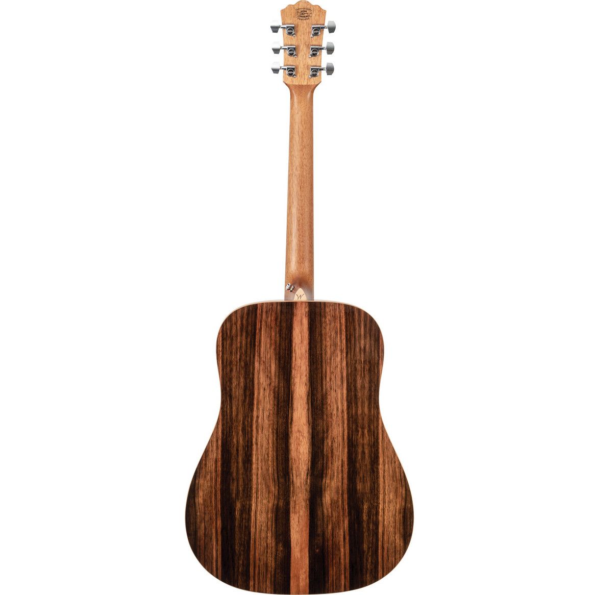 Задня частина і бічні сторони зроблені з ефектного смугастого чорного дерева з глянсовим оздобленням, що підкреслює екзотичне тяжіння цього вражаючого дерева. 25 1/2" шкала Laurel для грифа і бриджу, яка за зовнішнім виглядом і твердістю схожа на EI Rosewood, запропонує гравцеві відчуття дотику під пальцями. Okoume - це дерево, обране для шиї, а його природна матова поверхня зручна і швидка в руці.