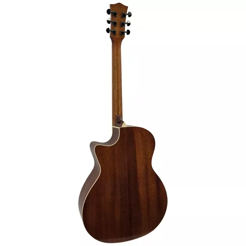 Верхня дека інструменту виготовлена з масиву ялини, що надає звучанню чистоти, яскравості та об'єму. Це дозволяє гітарі видавати насичені обертони, які добре резотують, роблячи кожну ноту виразною. Задня та бічні деки з ламінованого махагоні додають звучанню теплоти та глибини, створюючи збалансований тон, що підходить для різних музичних стилів.