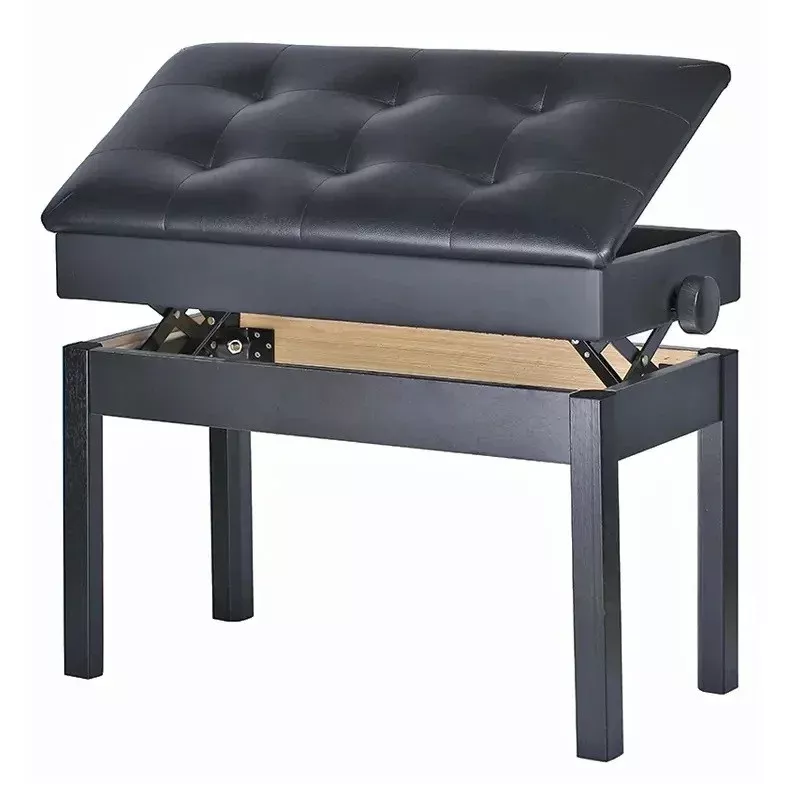 Конструкція банкетки виконана з міцного дерева, що додає їй стійкості і надійності. Дизайн банкетки продуманий до найменших деталей: вбудована книжкова полиця під сидінням дозволяє зберігати ноти, книги та інші необхідні музичні матеріали завжди під рукою. Це значно підвищує зручність та організованість під час гри. Висота банкетки регулюється в діапазоні від 48 до 58 см, що дозволяє легко адаптувати її під індивідуальні потреби користувачів. Завдяки своїй вазі у 11 кг банкетка залишається стабільною під час використання.