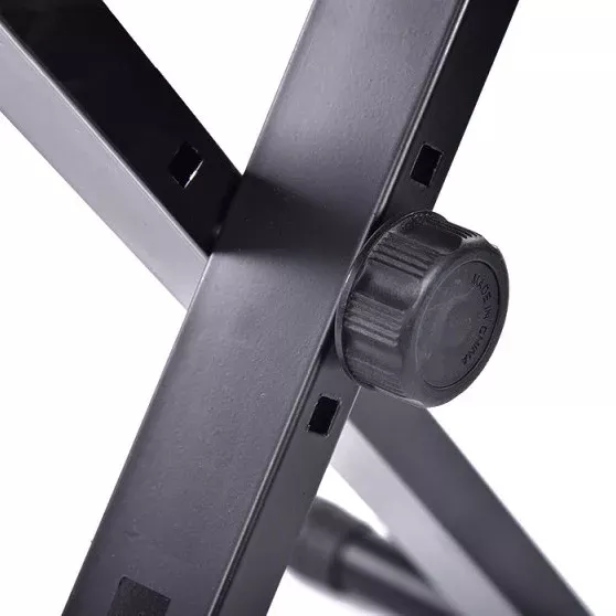 Alfabeto XBENCH-S (Black) – це X-подібна банкетка, яка ідеально підходить для гри на музичних інструментах завдяки своїй зручності та регульованій висоті. Банкетка має три рівні регулювання висоти: 44 см, 48 см і 51 см, що дозволяє легко підлаштувати її під потреби як дорослих, так і дітей. Сидіння банкетки складається з трьох шарів – дерев’яної основи, м’якого губчастого наповнювача і обшивки зі штучної шкіри, що забезпечує комфорт під час довготривалого сидіння. Для додаткової стабільності банкетка оснащена гвинтовою фіксацією, яка забезпечує міцність конструкції. Гумові накладки на ніжках запобігають ковзанню та захищають підлогу від подряпин.