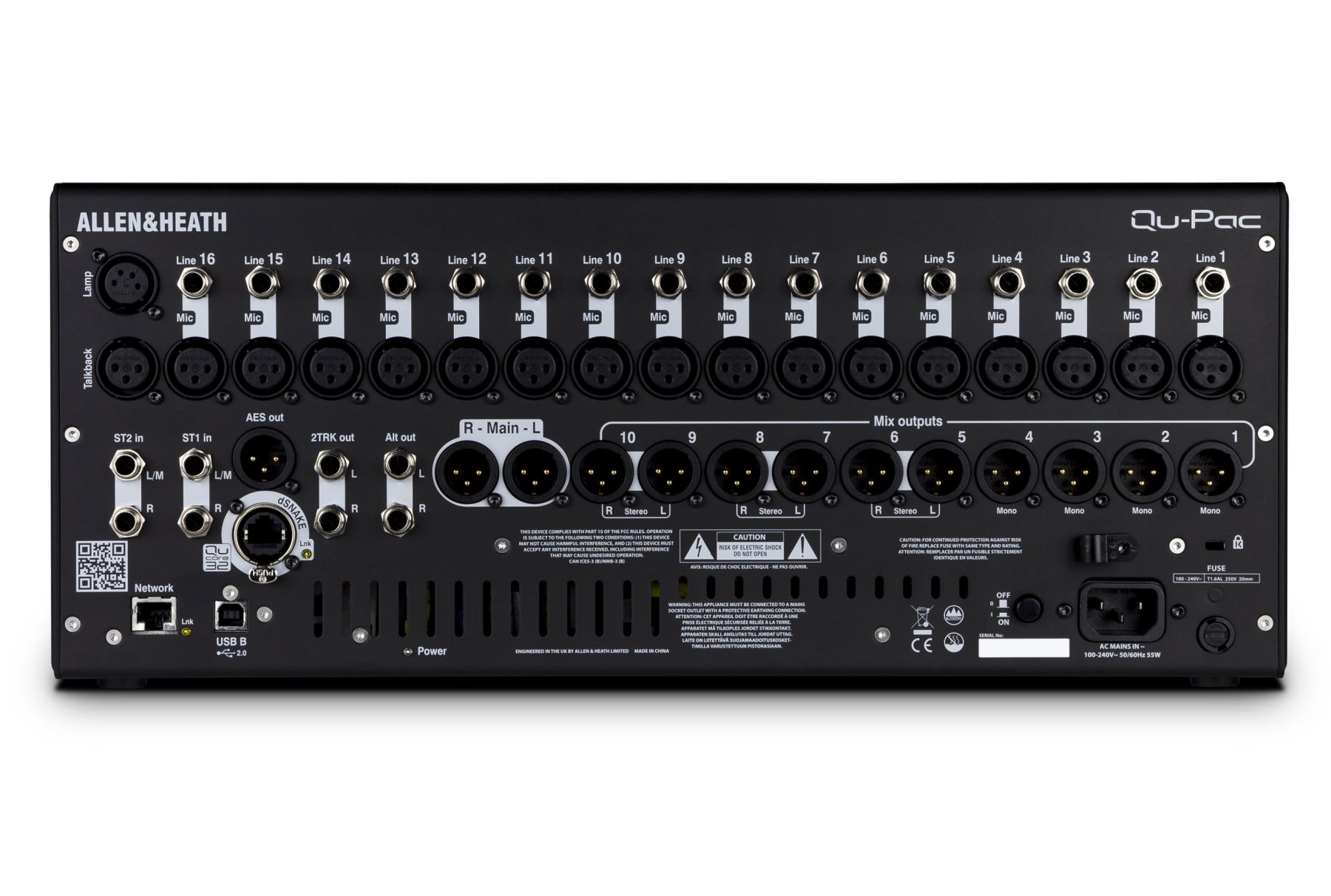 Qu-Pac це повнофункціональний мікшер, і в нього можна включити аналогові джерела звуку. Якщо ви хочете замінити аналоговий мультикор на цифровий, використовуючи кабель САТ5, ви легко зможете зробити це, просто підключивши до пульта цифрові стейдж-бокси Allen-Heath.