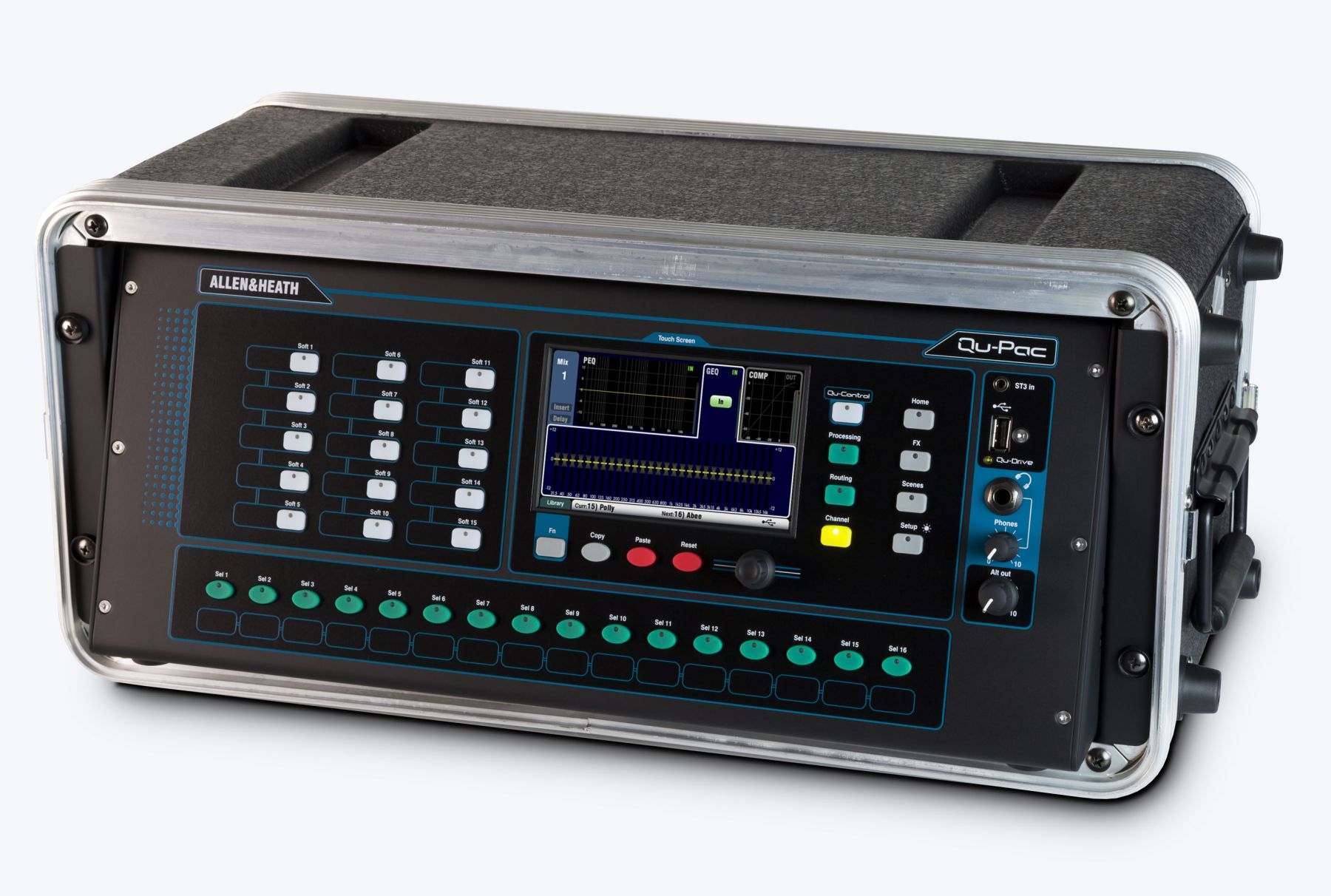 Qu-Pac отримав всю міць і легендарну якість консолей серії Qu і вмістив її в компактний пульт рекового розміру. Керуючи цим пультом за допомогою iPad ви можете легко мікшувати, а весь функціонал консолі доступний через сенсорний екран на передній панелі пристрою, якщо вам це необхідно. Призначені для користувача налаштування і розширення через кабель СА5 аж до 38 вхідних каналів, роблять цю консоль масштабованою до потрібних розмірів, а також відмовостійким пристроєм для працьовитих музикантів, роботи шкільних колективів, у готелях, на корпоративних заходах, барах з "живими" колективами, концертних залах, як систему персонального мікшування і для багатьох інших аплікацій у сфері професійного мікшування в дуже компактному розмірі. Користувацькі права і настроюваний екран Qu-Control роблять цей пульт зручним і безпечним для використання непрофесійними користувачами. Усі функції серії Qu, включно з багатодоріжковим записом прямо на USB-накопичувач, системою автоматичного мікшування мікрофонів (AMM), мікрофонними пресетами ProFcatory, включно з сумісністю з усією серією пристроїв і застосунків цієї серії та всіма аксесуарами, роблять цю консоль воістину універсальною і в деяких випадках незамінною.