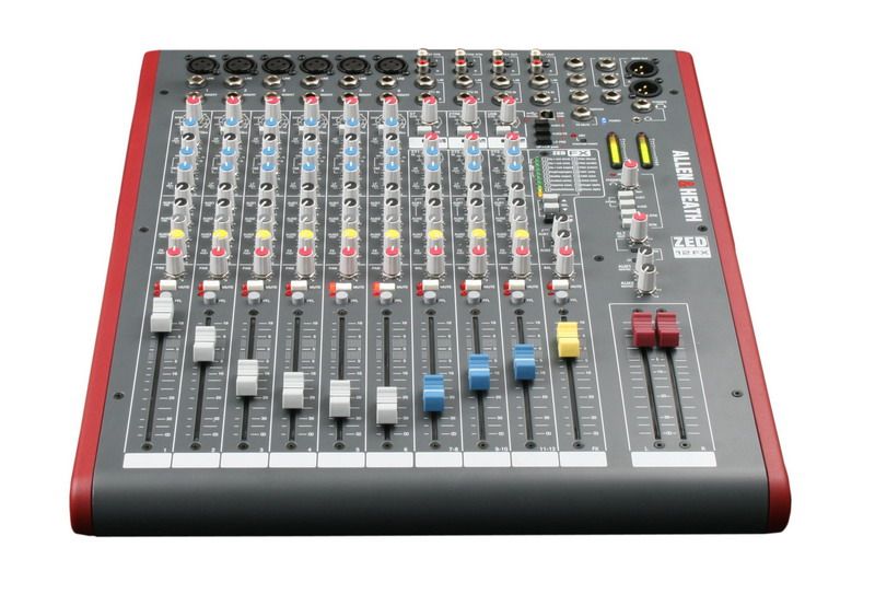 Allen Heath ZED12FX - чудовий компактний мікшерний пульт для невеликих музичних колективів. Він має малі розміри і може бути використаний для "живої" роботи і запису під час виступів і в студії. Мікшер оснащений налаштованим вхідним\вихідним USB портом для високоякісного стерео запису. Модель оснащена високоякісними стерео XLR конекторами для гнучких можливостей моніторингу через навушники або студійні монітори.
