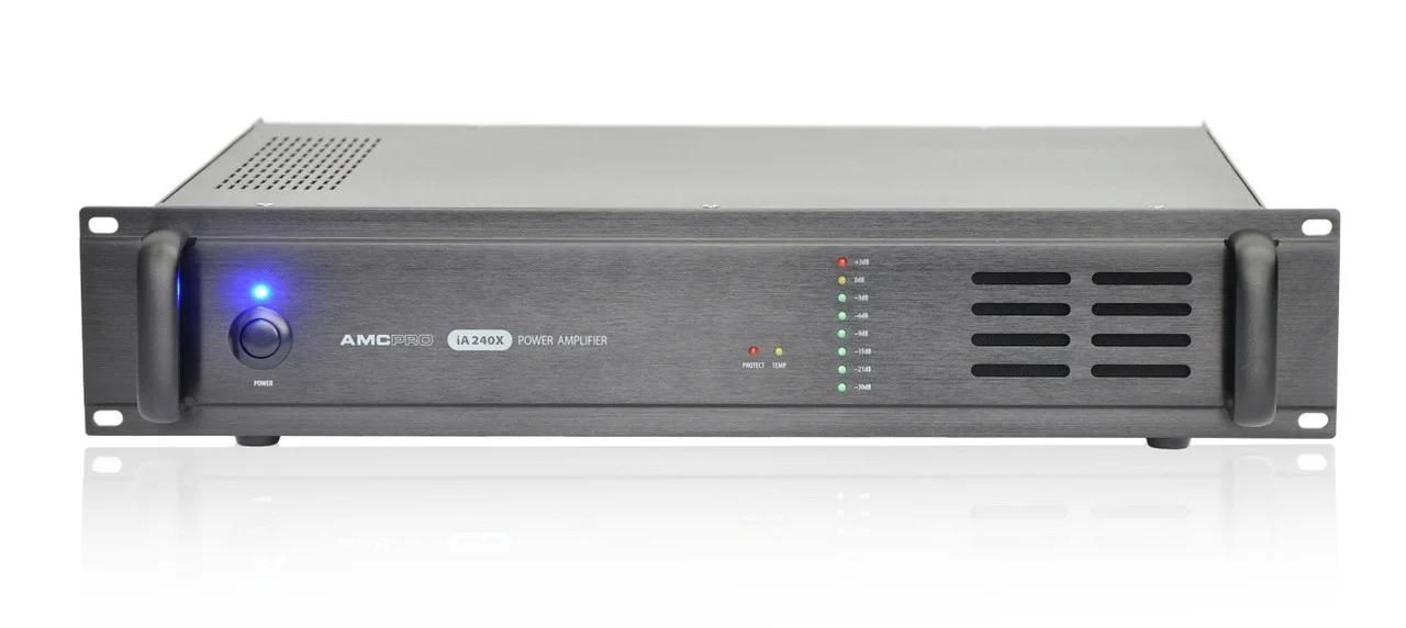 AMC IA240X являє собою 240 Вт підсилювач потужності для звукових систем на 100В, 70В і 4 Ом. Підсилювач має вихідні роз'єми Phoenix, симетричні вхідні та вихідні роз'єми XLR із заземленням і джерелом живлення 24 В постійного струму.