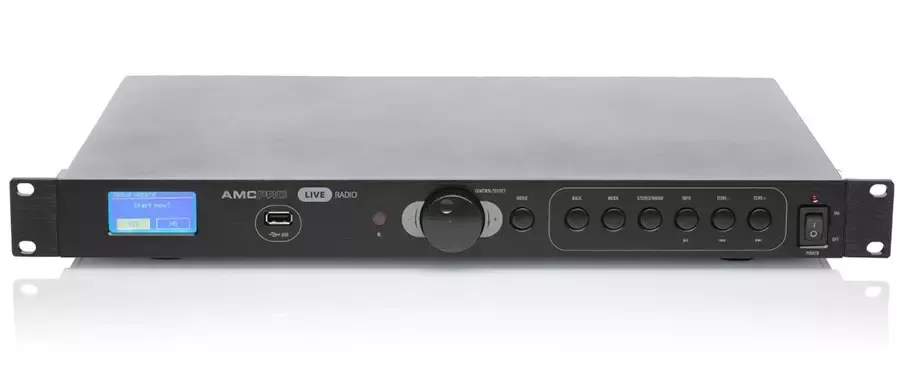 AMC LIVE RADIO - сучасний музичний плеєр з інтегрованим інтернет-радіо, медіа-плеєром, FM-радіо тюнером і USB Flash Reader. Пристрій підключається до локальної мережі через Wi-Fi або інтерфейсний кабель. Основними функціями можна керувати за ІЧ-пульта дистанційного керування. RDS і ID3 підтримка.