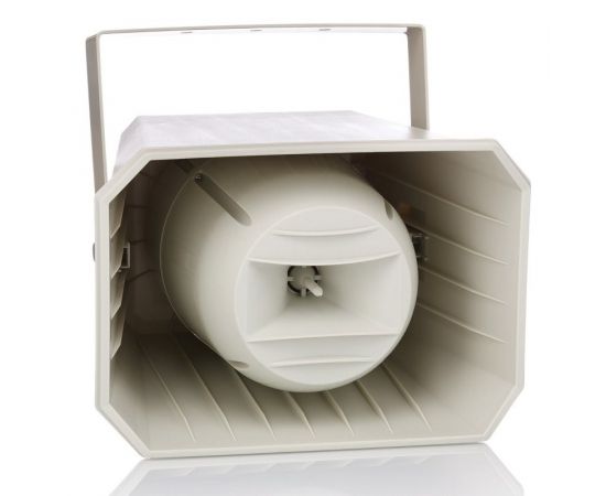 Дана акустична система призначена для інсталяції на відкритих майданчиках для якісного передавання мовленнєвого та музичного контенту завдяки класу захисту IP55 акустична система захищена від проникнення пилу та вологи, але не є повністю водозахищеною, корпус АС виготовлено з якісного ударостійкого пластику ABC. Завдяки трансформаторному компонуванню, рупор може працювати в трансляційних мережах 100 вольт. Є відводи для комутації - 50/25/12/5 Ватт, але так само виробник залишив можливість підключення в низькоомному режимі - 50 Ватт 8 Ом. діапазон відтворюваних частот 90/20000 Герц, максимальний звуковий тиск 115 дБ. Чутливість 99 дБ. Колір корпусу - Сірий.