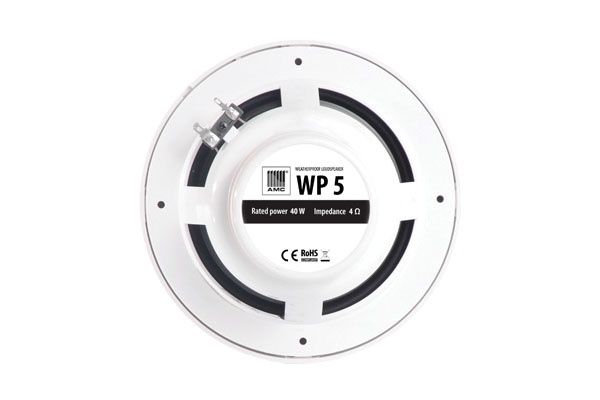 AMC WP 5 - це вологозахищений гучномовець інсталяційного типу з вмонтованим коаксіальним драйвером (5" НЧ + 0.5" ВЧ), що розроблявся для експлуатації в системах фонового озвучування та голосового оповіщення. Застосування 4 Ом звукових котушок дає змогу встановлювати більше акустичних систем в одному ланцюзі. Разом з цією моделлю ви отримуєте акуратне відтворення звукового діапазону без шумів і перешкод. У конструкції використовується пластикова мембрана перетворювача, ізольований від вологи магніт і звукова котушка. Гучномовці модельного ряду WP мають порівняно високий рівень SPL для своїх габаритів, а також широку сферу покриття, що ідеально підходить для різноманітних закладів, які потребують якісного озвучування та непомітності в інтер'єрі. Надтонкий дизайн систем з вологостійкими компонентами також робить їх оптимальним рішенням для об'єктів, де потрібні надійні системи з можливістю роботи за будь-яких погодних умов.