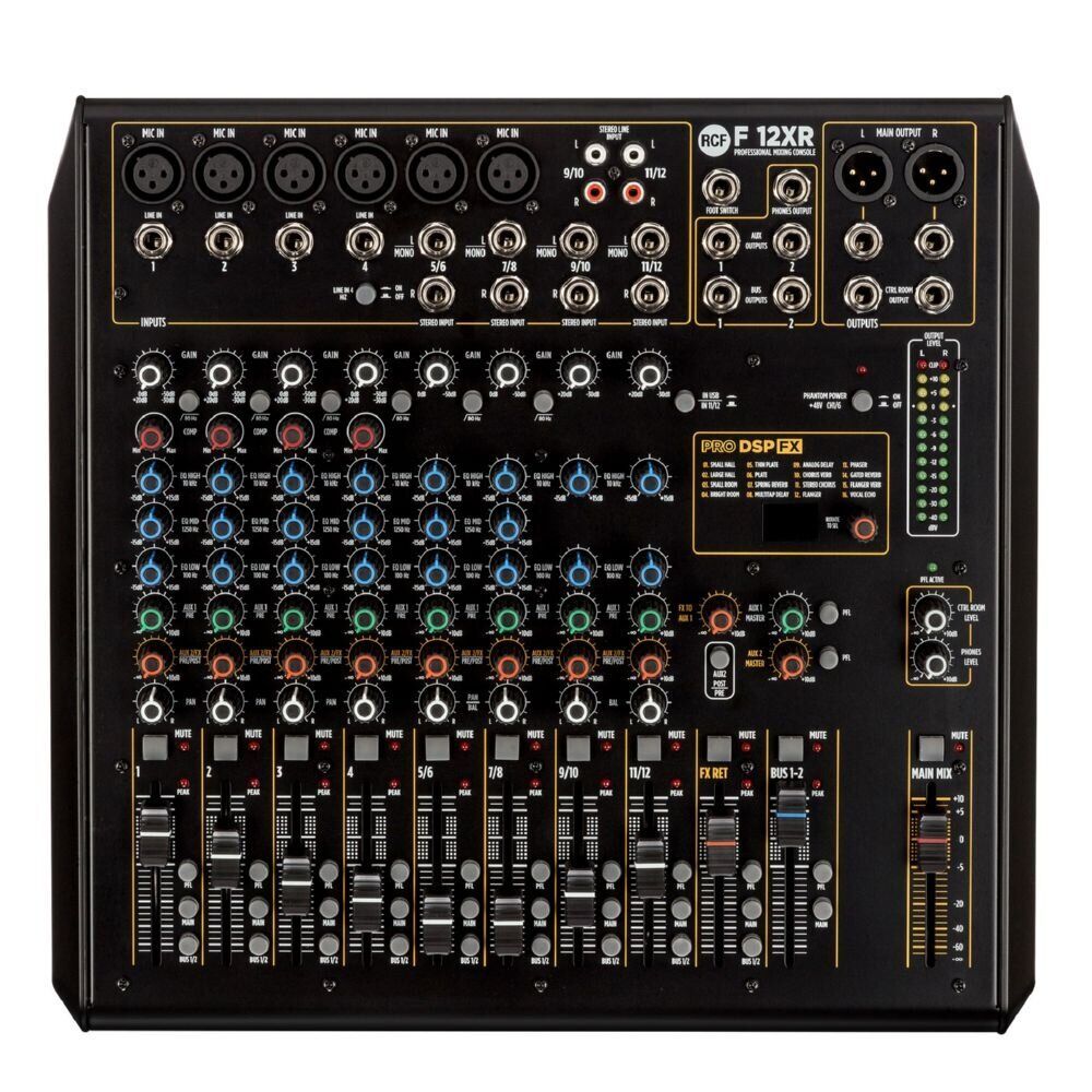 Мікшери нового покоління RCF серії F засновані на багатій спадщині професійної серії E і забезпечують високоякісний звук у чотирьох форматах від 6 до 16 каналів. Потужний інструмент для музиканта, повністю задуманий і розроблений командою розробників RCF. Розміщений у міцному металевому корпусі, кожен мікшер має повністю збалансований аудіошлях від входу до виходу й унікальний DSP FX: 16 професійних ефектів, як-от реверберація (hall, room,), затримки (Mono, Stereo та Multitap), хор, фленджер і відлуння.
