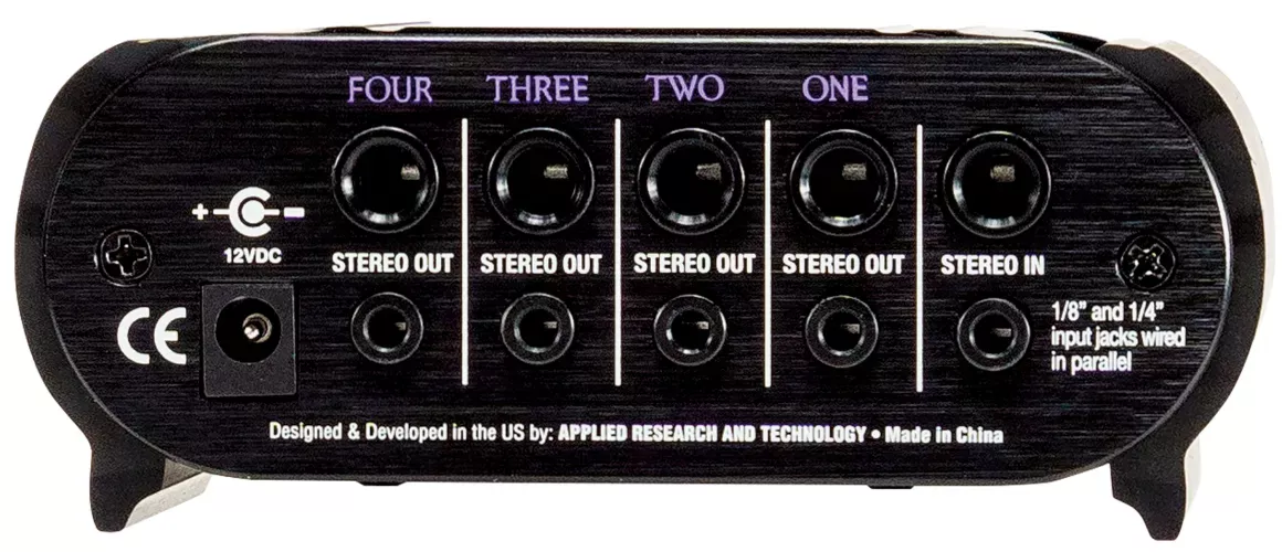Він оснащений чотирма вихідними каналами з незалежними регуляторами гучності. Кожен канал має стереовиходи 1/4" і 1/8", які можна використовувати одночасно, тож ви можете підключити до 8 пар навушників.