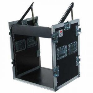 Професійний дерев'яний рековий кейс із 3-ма знімними кришками. Рековий розмір: вертикальний 10U + горизонтальний з регульованим кутом нахилу 8U для мікшерного пульта. Замки "метелик". Металеві ручки та гумові ніжки. Потужна посилена фурнітура. Кейс виготовлений з дерева Marine Pine Ply і покритий покриттям, що не дряпається.