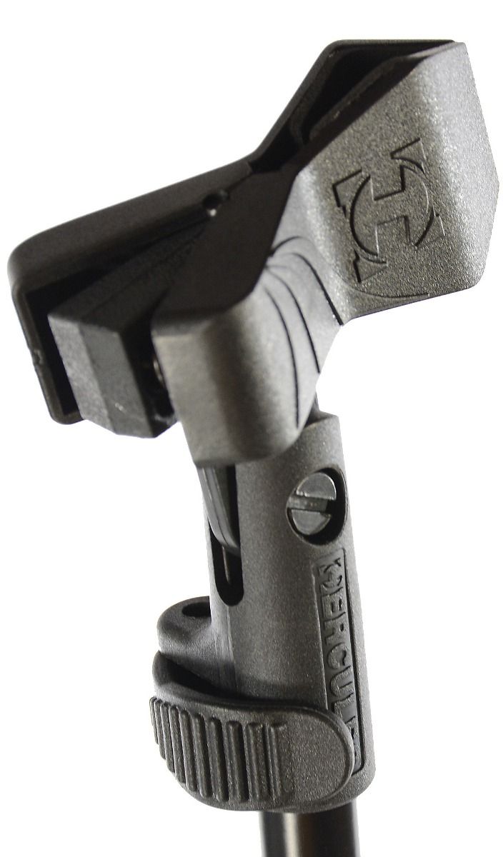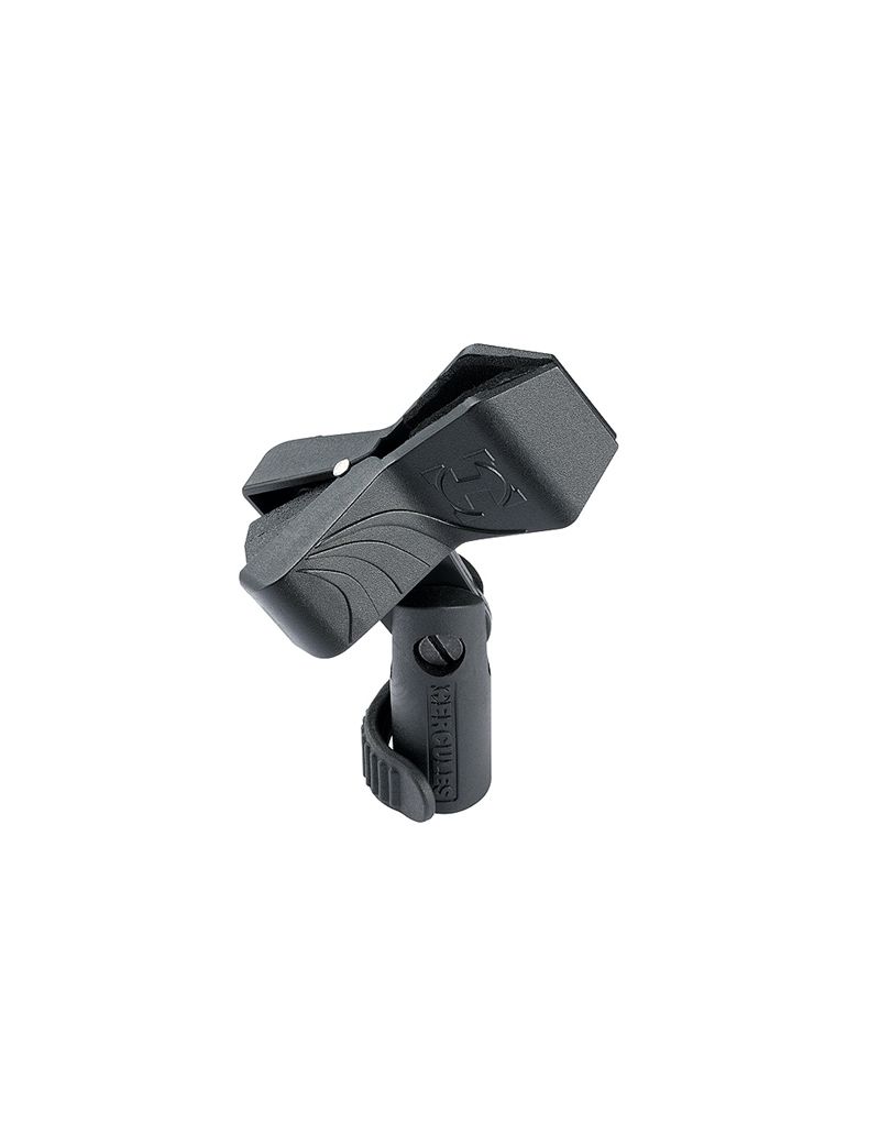 HERCULES MH100B - це затискач зі спеціальної гуми для міцного кріплення. Система EZ Adaptor дає змогу вам встановлювати мікрофонний затискач до клацання (фіксовані положення) Підходить для всіх мікрофонних стійок без верхнього кріплення під мікрофон.