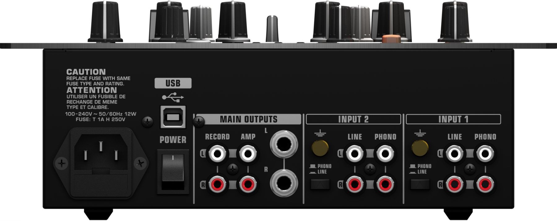 2-канальний DJ-мікшер з 2 лінійними стереовходами, 2 стереовходами для вінілових програвачів, мікрофонним входом, оптичним кросфейдером, безшумними VCA-фейдерами, 3-смуговими канальними еквалайзерами, 3-смуговими кіл-еквалайзерами, біт-синхронізованим цифровим ефектом-процесором, основним стереовиходом, стереовиходом Amp, стереовиходом Record, виходом для навушників і аудіопортом USB.