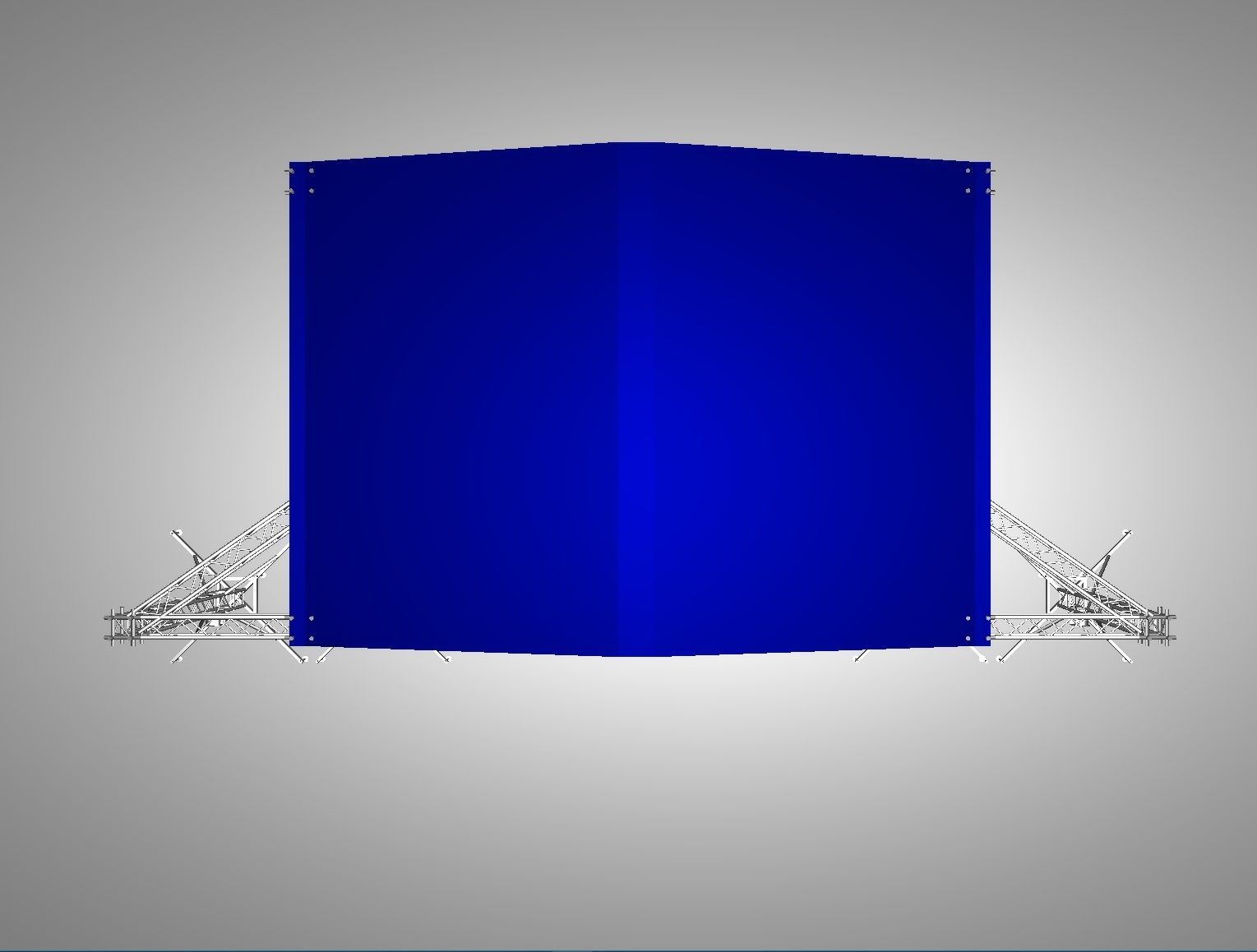 Також до комплектації цього підйомного даху входять: тент із системою розтяжок, одяг сцени (задник і боковини), виготовлений із радіотканини, і система труб для натягування тенту.
