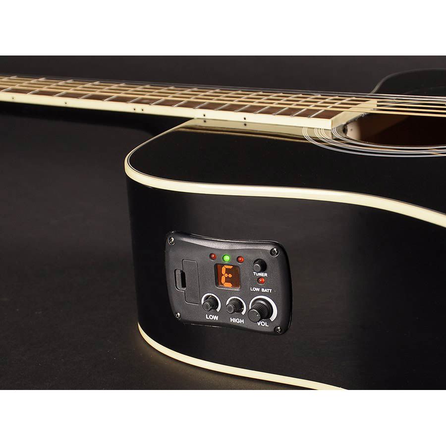 Електроакустична гітара, 6 струн. Форма деки дредноут. Активний еквалайзер, литі кілки. У наявності кольори: чорний, Red Sunburst.