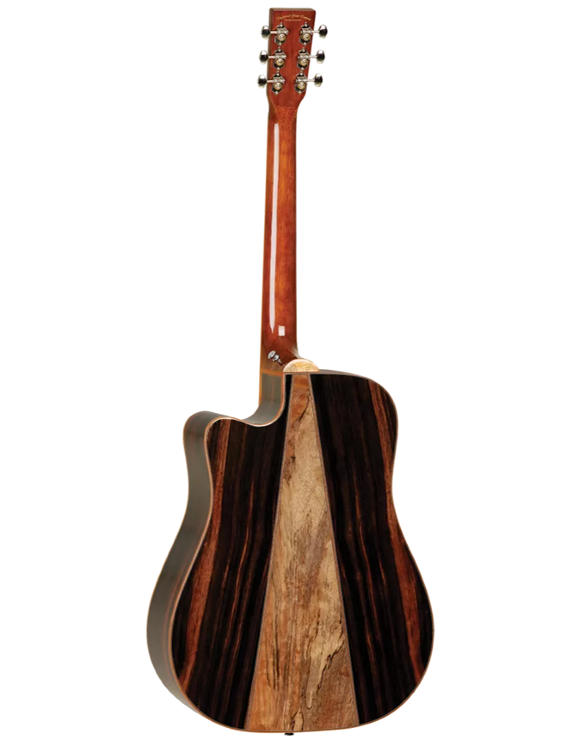 Java TJ5CE — інструмент, де акустична міць гармонійно поєднується з передовими технологіями. Створена у класичній формі корпусу Dreadnought з елегантним вирізом (Cutaway), ця гітара є втіленням універсальності. Вона пропонує не лише гучне, насичене звучання, ідеальне для будь-якого стилю музики, але й забезпечує комфортний доступ до верхніх ладів для віртуозних соло та виразних мелодій. Серце її звучання — верхня дека з цільної ялини (Solid Spruce), яка славиться своєю неймовірною чутливістю та кришталевою чистотою тону. Завдяки цьому гітара миттєво відгукується на кожен дотик, даруючи потужний, динамічний та артикульований звук. Чи граєте ви енергійним боєм, чи витонченим перебором — кожна нота звучатиме яскраво та впевнено, легко прорізаючи будь-який мікс. Але справжня магія ховається у деталях. Унікальна трикомпонентна задня дека, виготовлена з екзотичної комбінації амари та «спалтового» манго, перетворює цю гітару на візуальний шедевр. Захоплюючі візерунки деревини — це не просто прикраса. Амара додає звучанню тепла й балансу, а спалтове манго збагачує його глибиною та складністю. Разом з обичайкою з амари вони створюють багатий, об'ємний тембр із винятковим сустейном. Створена для сучасної сцени, Java TJ5CE оснащена передовою системою електроніки Fishman Presys EQ. Цей потужний преамп дає вам повний контроль над звучанням при підключенні. Вбудований еквалайзер, функція контролю фази для боротьби зі зворотним зв'язком і зручний тюнер гарантують, що ваш звук на сцені буде таким же бездоганно чистим, точним і динамічним, як і її акустичне звучання.