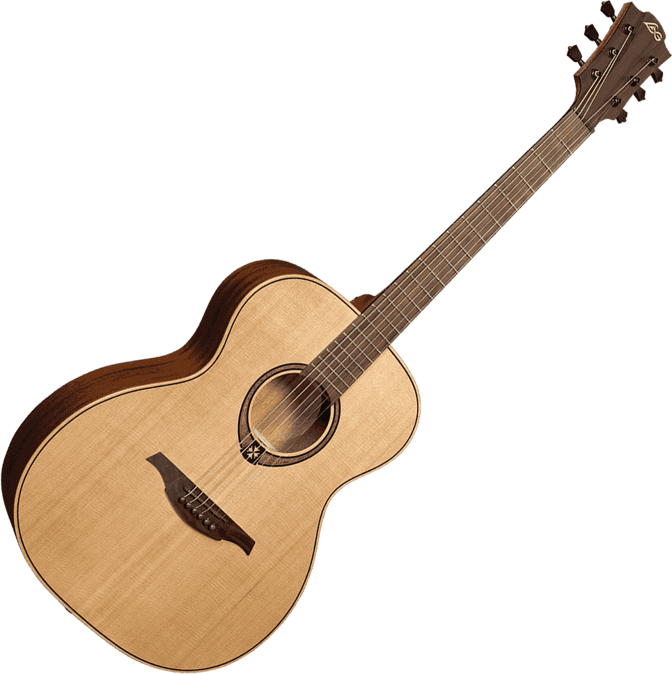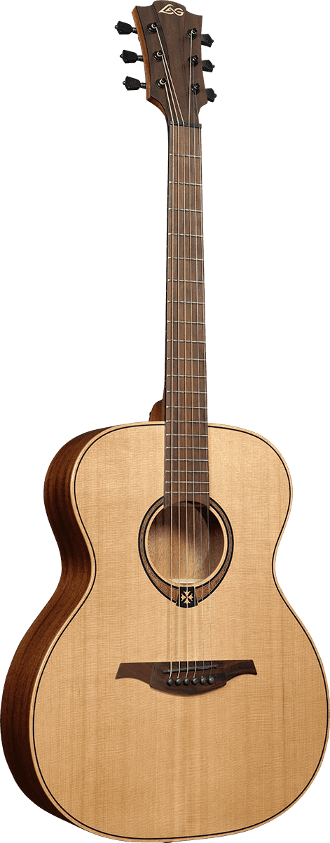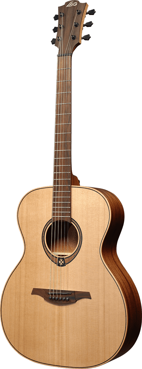 - Голова грифа: Браунвуд, інкрустація логотипу Lag виконана кленом