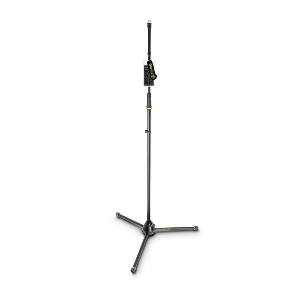 Мікрофонна стійка Gravity MS 43 складається з міцних труб з порошковим покриттям чорного кольору. Максимальна висота 169 см. Доповнюють конструкцію надійна основа, виготовлена з литого цинку, і складна тринога зі сталі з товстими гумовими наконечниками для захисту покриття підлоги.