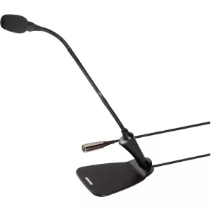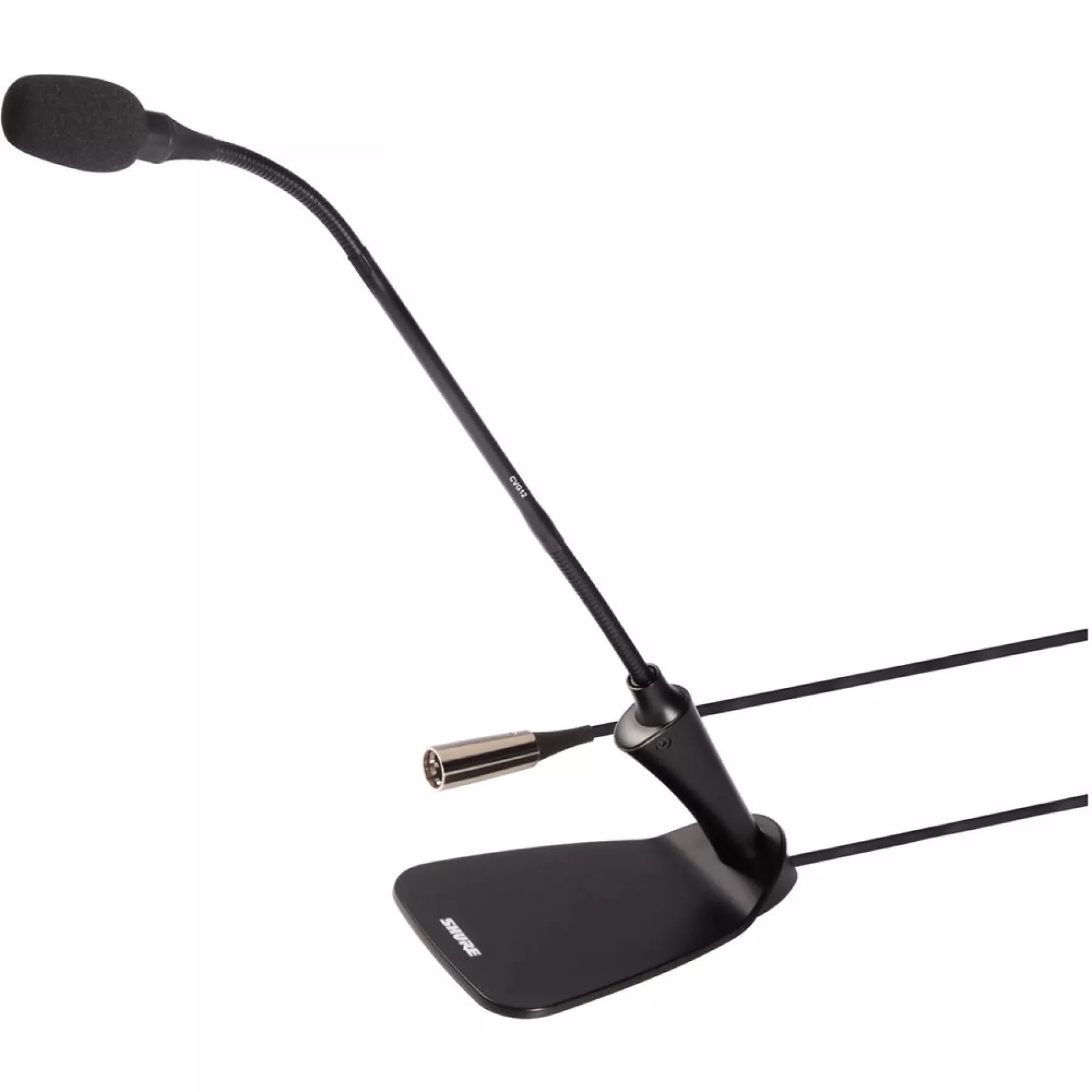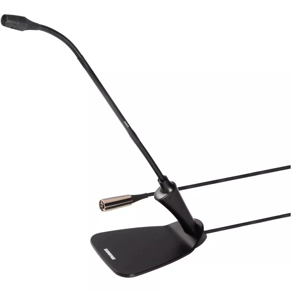SHURE CVG12D-B/C – конденсаторний кардіоїдний мікрофон на «гусячій шиї» складається з вбудованої настільної основи та вбудованого підсилювача для використання як вбудованого звукопідсилення або конференц-зв'язку. Має двосекційну гусячу шию для позиціонування та радіочастотну фільтрацію Commshield для усунення перешкод. Кардіоїдна діаграма спрямованості з індивідуальною реакцією на мовлення. Інтегрована настільна база. Додаткова функція вимкнення звуку зі світлодіодним підсвічуванням. 12 дюймів (30,5 см) гусяча шия. Вбудований підсилювач. Двосекційна гусяча шия спрощує позиціонування та варіанти розміщення. XLR-кабель/з'єднання. Готове рішення для мінімізації часу налаштування. Всі моделі Centraverse оснащені технологією радіочастотного фільтрування Commshield®. Захист від небажаних радіочастотних перешкод від бездротових портативних пристроїв (смартфонів і т. д.). Висока стійкість до інтенсивних прилеглих радіосигналів CVG12D, оснащений двома секціями «гусяча шия» для повної артикуляції та інтегрованою основою для точного позиціонування, забезпечує масштабовану продуктивність високого рівня в різних місцях, включаючи подіуми і робочі столи.