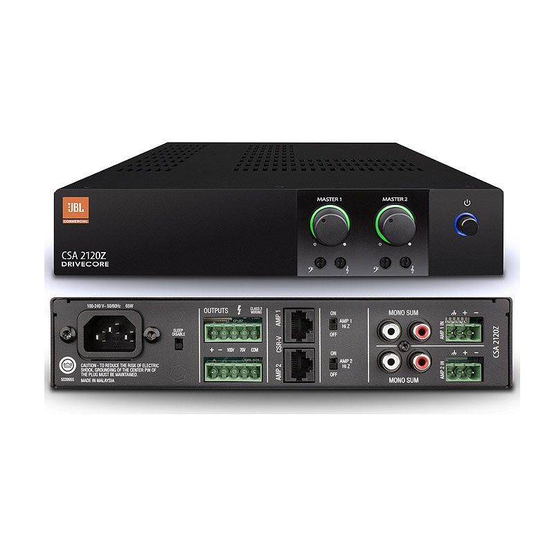 JBL CSA 2120Z - топовий двоканальний трансляційний підсилювач у рековому корпусі заввишки 1U, Він входить до серії комерційних підсилювачів JBL Commercial Series Amplifiers (CSA). Може працювати як з низькоомною (4-8 Ом) акустикою, так і в трансляційних лініях 70/100В. Підсилювач базується на моделях серії DriveCore: понад 500 компонентів замінено лише одним чипом, який забезпечує потужність 120 Вт/канал.