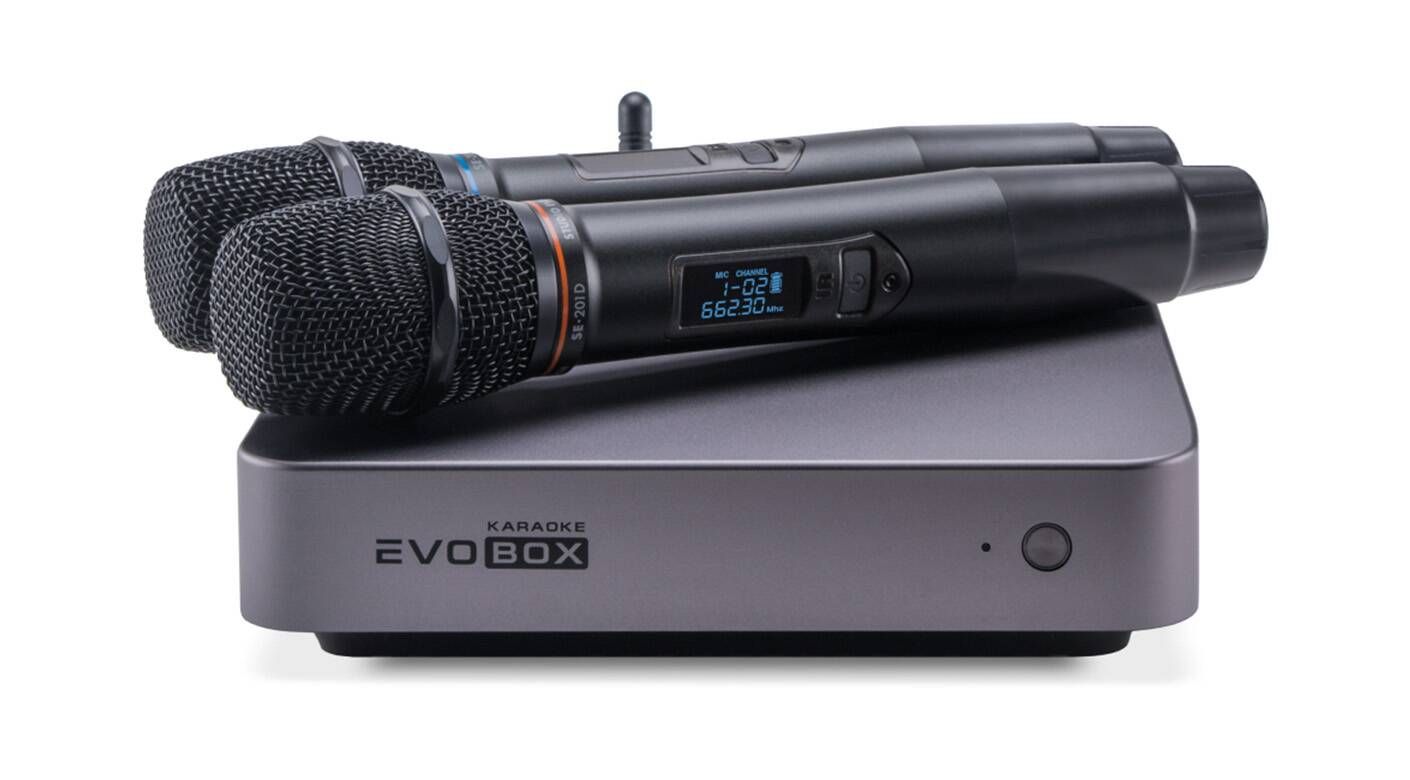 Новий EVOBOX з підтримкою 4К - це незрівнянне звучання, багатий функціонал і надчітке зображення. Усі можливості сучасних професійних караоке-систем зібрані в EVOBOX: додавайте ефекти і застосовуйте обробку голосу; підключайте два мікрофони і змагайтеся з друзями, завдяки автоматичній оцінці співу; знаходьте улюблені пісні за секунду і записуйте своє виконання в один клік.