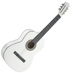 Класична гітара Stagg C430 M WH має відмінне, чисте звучання, яке сподобаються як початківцям, так і досвідченим музикантам. Інструмент має стильний класичний дизайн і колір, який надає йому елегантного вигляду. Стрункий гриф і комфортна відстань між струнами роблять гру на гітарі Stagg C430 M зручною і приємною. Stagg відомий своїми надійними інструментами, тому ви можете бути впевнені як ця гітара. Вона легко налаштовується і довго тримає стрій. Ця класична гітара від STAGG - чудовий вибір для тих, хто хоче придбати якісний інструмент з чудовим звучанням і стильним дизайном. Технічні характеристики: Верхня дека: Липа Задня і бічні стінки: Липа Гриф: Нато з анкером Накладка: Композитний горіх Бридж: Композитний горіх Механіка кілочків: Класична, нікельована Оздоблення: Матове Кількість струн: 6 Кількість ладів: 19 Маркування ладів: бічна частина Тип корпусу: Класичний Колір: Чорний Розмір: 3/4 Мензура: 23,05" (585 мм) Ширина накладки грифа біля верхнього поріжка: 44 мм