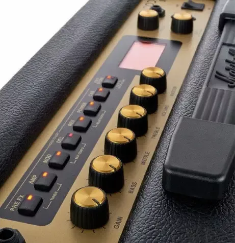 Керування: 100 редагованих пресетів, еквалайзер (bass, middle, treble), gain, volume, моделі підсилювачів, кабінетів, modulation, delay, reverb, через додаток Marshall Gateway (iOS/Android)