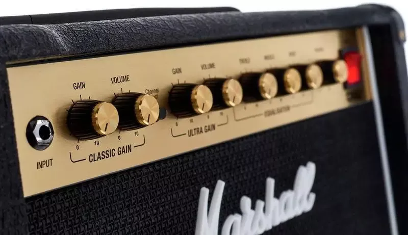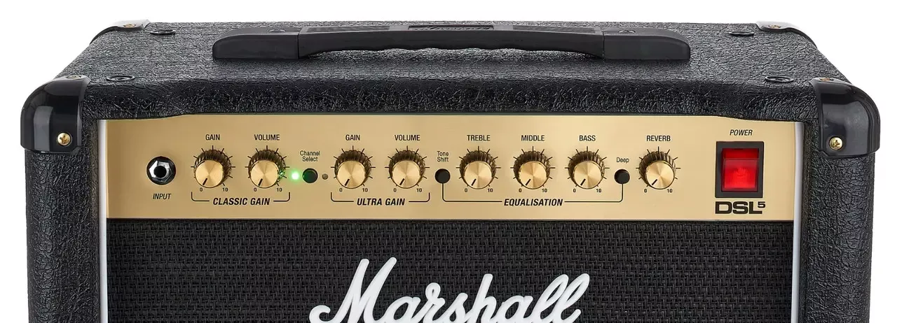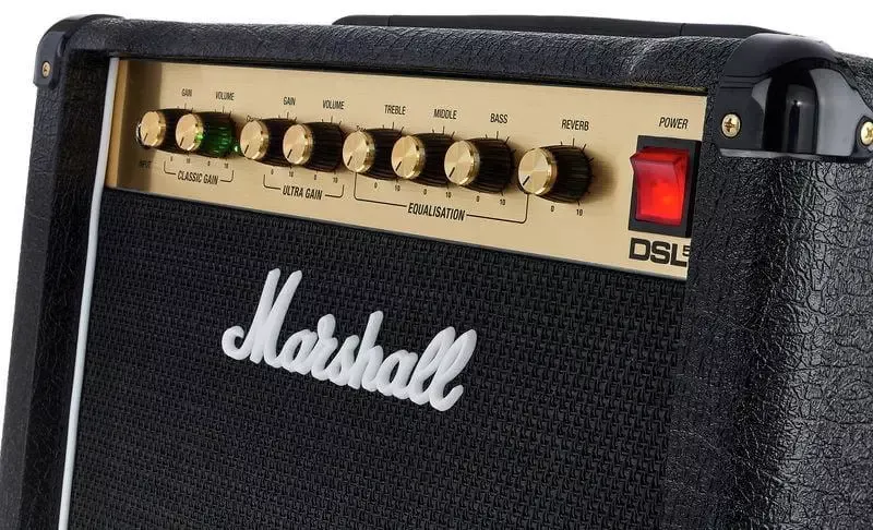 MARSHALL DSL5CR - це двоканальний ламповий комбопідсилювач для електрогітари. Канали звучання комбо перемикаються. Ламповий 5-ватний комбо стане хорошим придбанням для тих гітаристів, які бажають отримати якісне звучання електрогітари на невеликій сцені, у будинку, в студії або на репетиції. Підсилювач представлений в категорії невеликих, компактних гітарних комбо, які незважаючи на свій розмір, здатні видавати гарне звучання. Потужність комбо становить 5 Вт. Комбопідсилювач володіє якісним звучанням, прекрасним блюзових і фатальним тоном, класичним зовнішнім виглядом. За звучання комбо відповідає один 10" динамік Celestion Ten-30. Є вбудований трьохсмуговий еквалайзер. На задній панелі знаходиться перемикач, що дозволяє активувати більш тихий режим звучання 1 Вт. Є роз'єм для підключення футсвіча (входить в комплект), роз'єми Send / Return для підключення зовнішніх ефектів.