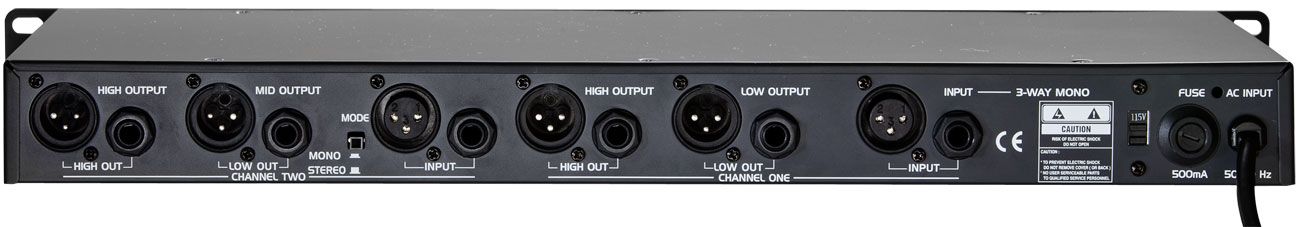 На кожному каналі можна регулювати частоту поділу, вхідні та вихідні рівні сигналу. Частота поділу встановлюється в діапазонах 80 - 920 Гц і 800 - 9200 Гц. Для кожного вихідного каналу є кнопка вимкнення. На задній панелі розташовані симетричні гнізда XLR і 1/4 TRS Jack, перемикач 2-х або 3-х смугового режиму роботи.