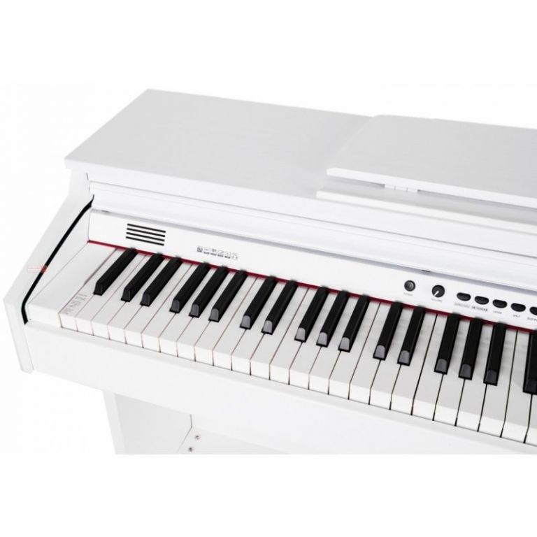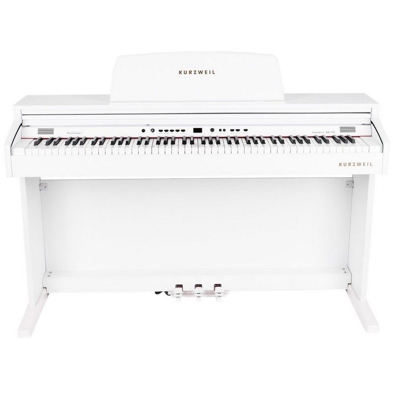 Цифрове піаніно Kurzweil KA130 WH з молоточковою клавіатурою (88 повнозважених клавіш, чутливих до торкання), сучасний кабінетний дизайн, 30Вт стерео звукова система з двома динаміками, вмонтований пюпітр, висувна кришка, просте та зрозуміле управління, вмонтовані педалі.