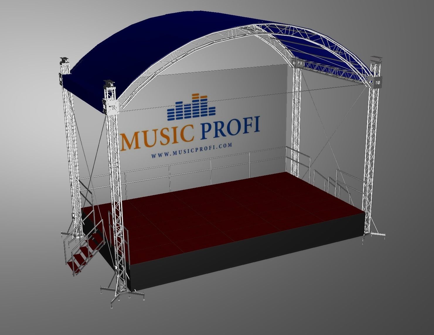 Цей сценічний комплекс вирізняється наявністю легкого алюмінієвого подіуму, який зібрано зі стандартних сценічних модулів 2х1 м. Подіум накривається дахом, який піднімається чотирма ручними лебідками і зібраний з міцних ферм квадратного перетину серії U300QB.