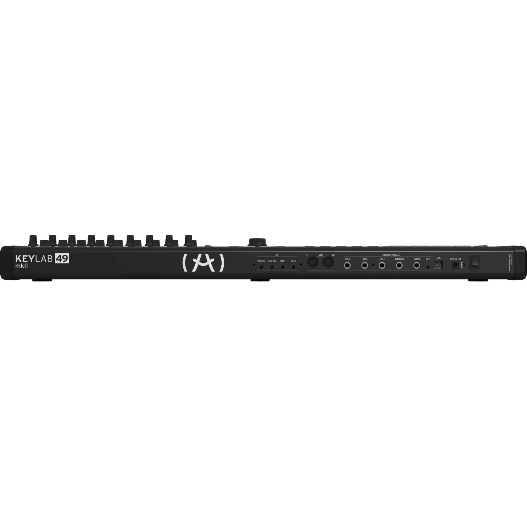 Arturia KeyLab 49 MkII є універсальним MIDI-контролером, який включає в себе 49 чутливих до швидкості клавіш з післядотиком, клікабельний енкодер, 9 додаткових енкодерів, 9 слайдерів, 16 сенсорних і чутливих до тиску педів з RGB підсвічуванням, 6 перемикачів керування, 4 командних перемикачі, колесо модуляції та колесо pitch-bend.