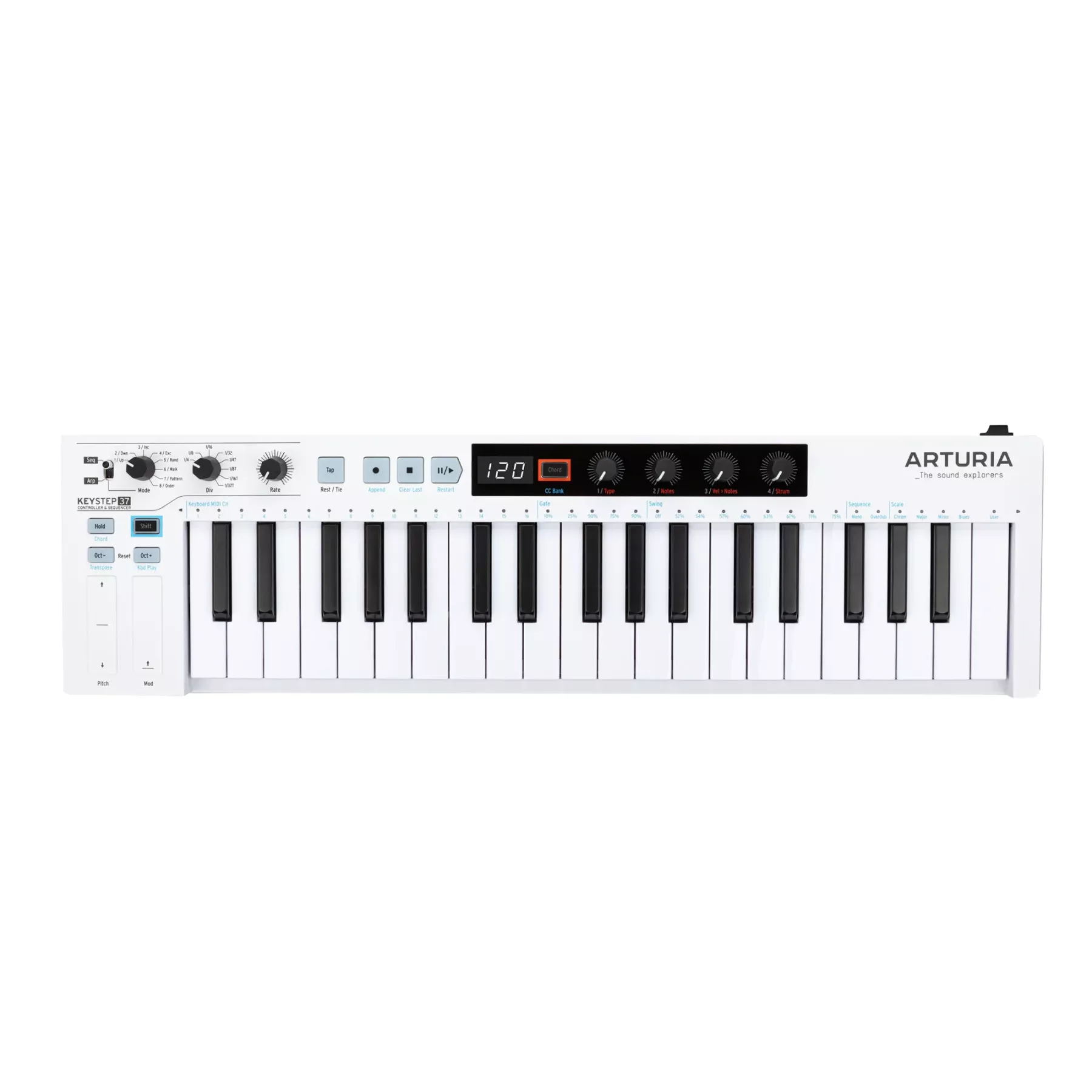 У центр інтерфейсу KeyStep 37 Arturia додали 4 нові поворотні регулятори з екраном, надаючи Вам миттєвий доступ до нових вражаючих інструментів та налаштувань MIDI - що дає Вам повний контроль в нескінченних варіаціях.