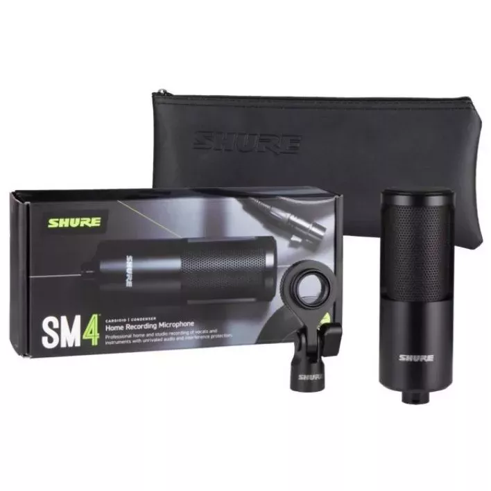SHURE SM4-K - це ідеальний вибір для тих, хто хоче створити професійний звук у домашніх умовах. Цей мікрофон забезпечує бездоганний запис вокалу та інструментів з готовим до мікшування звуком та надійним захистом від перешкод. Оснащений латунною 1-дюймовою капсулою з подвійною діафрагмою, що дає змогу йому точно відтворювати як низькі, так і високі частоти. Його кардіоїдна діаграма спрямованості ефективно ізолює небажані звуки і зменшує ефект близькості, забезпечуючи чистоту запису. Вбудований поп-фільтр запобігає захопленню небажаних низькочастотних шумів, що робить обробку звуку простішою та ефективнішою.