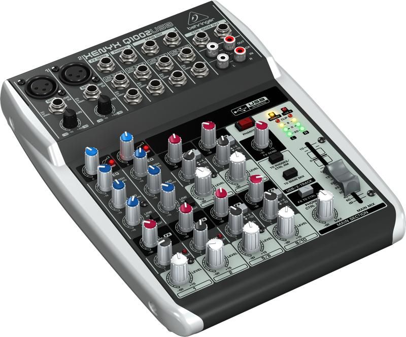 Аналоговий мікшерний пульт BEHRINGER XENYX Q1002USB має 2 мікрофонні входи для підключення за допомогою роз'ємів XLR або JACK. Кожен з мікрофонних входів має власний регулятор чутливості GAIN, регулятор гучності LEVEL і 3х-смуговий еквалайзер, що регулює рівень низьких, середніх і високих частот. Мікрофонні входи забезпечені кнопкою придушення низьких частот LOW CUT, регулятором балансу PAN з індикатором перевантаження входу і регулятором посилу на петлю ефектів FX. Для роботи конденсаторних мікрофонів використовується кнопка подачі додаткового фантомного живлення в 48 вольт. Обидва мікрофонні входи забезпечені якісними попередніми підсилювачами серії XENYX.