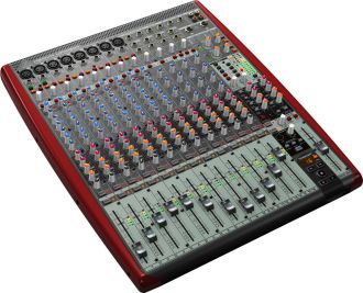 Високоякісний 16-канальний мікшер з мікрофонними попередніми підсилювачами XENYX, компресорами, британськими еквалайзерами, 24-бітними ефектами, 16 х 4 USB/FireWire інтерфейсом і 16-трековим USB-рекордером.