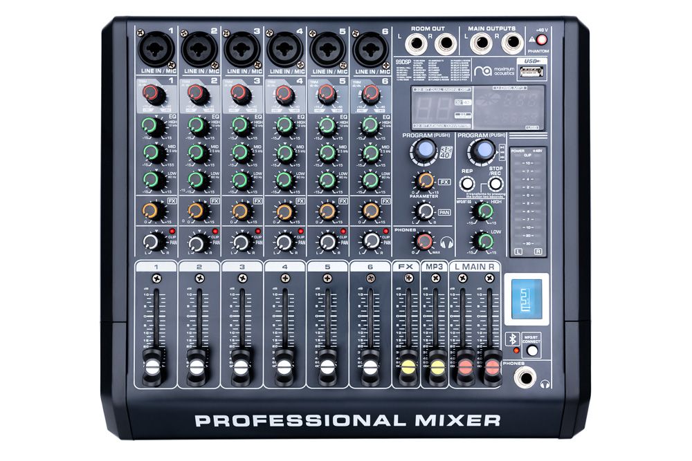 Мікшерний пульт Maximum Acoustics CONCERTMIX.6 - це універсальне і водночас компактне рішення, що чудово підійде як для роботи в домашній студії, так і для озвучування невеликого концерту. Він оснащений усім необхідним для стабільної та комфортної роботи: 6 дискретними преампами з фантомним живленням, трьохсмуговим еквалайзером для кожного каналу, панорамуванням, вбудованим DSP-процесором з широким вибором різноманітних ефектів. Комбіновані вхідні роз'єми Neutrik гарантують довговічну роботу і стабільну та безперебійну передачу сигналу.