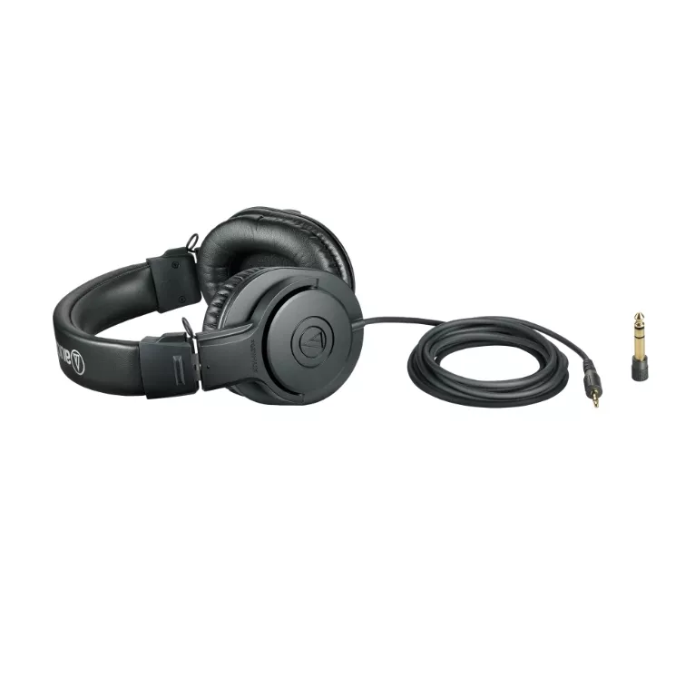 Audio-Technica ATH-M20X студійні моніторні навушники закритого типу; Поворотна на 15 градусів конструкція чашок; В комплекті кабель та 6,3 мм. адаптер-джек; Вага: 190 г.