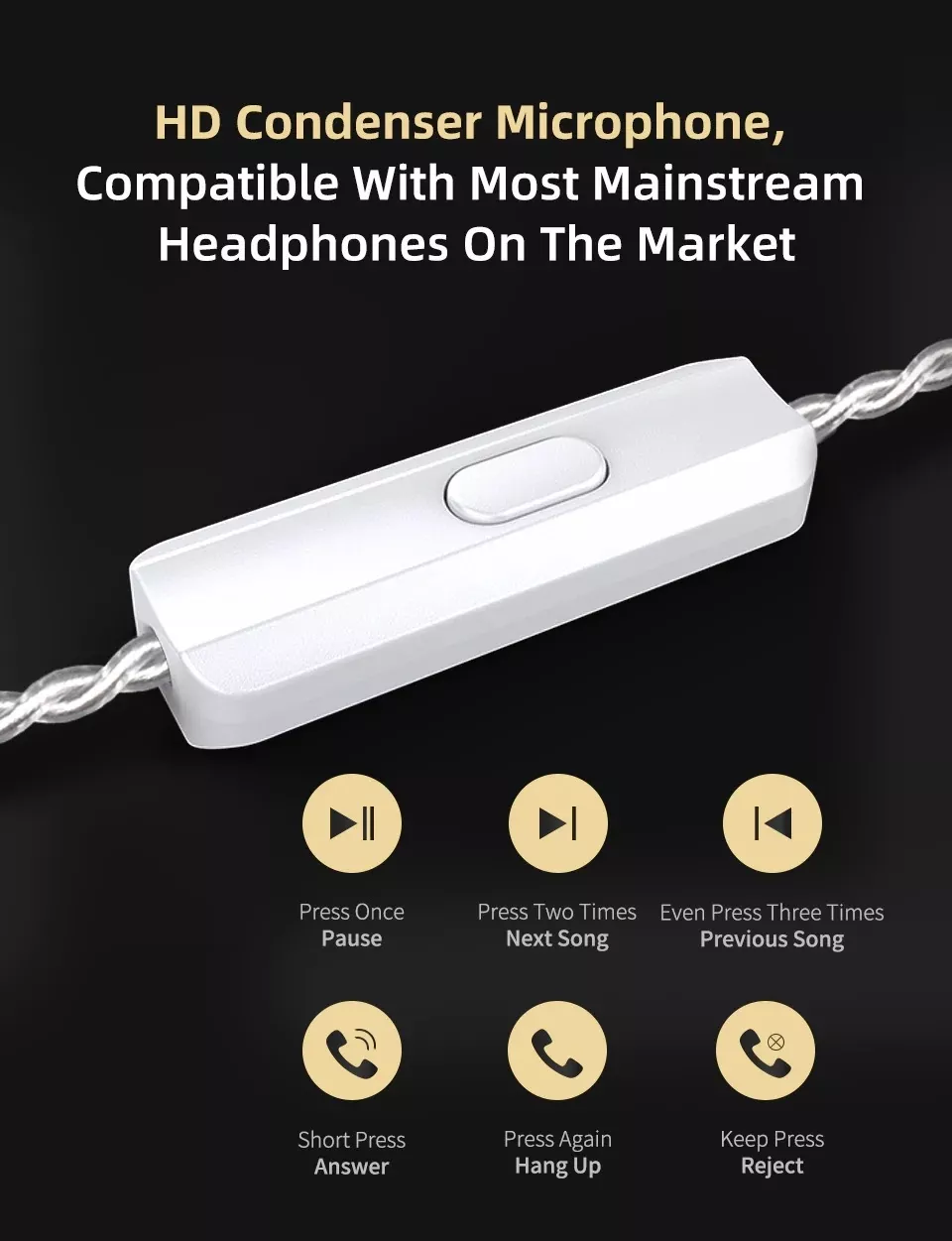 У KZ ZSN PRO X MIC комфортно прослуховувати музику у метро чи під час занять спортом. Звуковод зроблений з металу, на ньому є поглиблення для кращого зчеплення з амбушюрами та сітка для захисту від попадання пилу та бруду. За низькі та середні частоти в оновленій моделі відповідає динамік 10мм, за високі – арматурний драйвер 30095. Гібридна конструкція дозволяє досягти хорошого звучання всього частотного діапазону. У комплект входить срібний кабель, який виготовлений з якісних матеріалів і чудово передає звук. L-подібний штекер та розгалужувач виконані із щільної гуми та не зношуються навіть через кілька років. Плетений провід не заламується, а біля конектора є невеликий силіконовий завушник для більшого комфорту при носінні. На кабелі ZSN PRO X MIC є невеликий блок керування з мікрофоном. Прийняти виклик можна одним натисканням кнопки, а тривале натискання клавіші скине його.