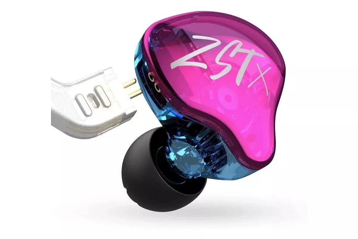 KZ ZST X MIC – гібридні навушники з арматурним та динамічним драйвером виконані в напівпрозорому корпусі анатомічної форми, мають збалансоване звучання завдяки використанню якісних випромінювачів. Дріт відключається і при бажанні може бути замінений на будь-який інший з таким же типом підключення. Оновлення популярної моделі ZST отримало покращений 10-мм динамічний драйвер, який відповідає за низькі та середні частоти. Для середніх та верхніх частот використовується арматурний випромінювач 30095. Гібридна конструкція дозволяє домогтися яскравого звучання з щільним басом, серединою, що добре читається, і дзвінкими високими.