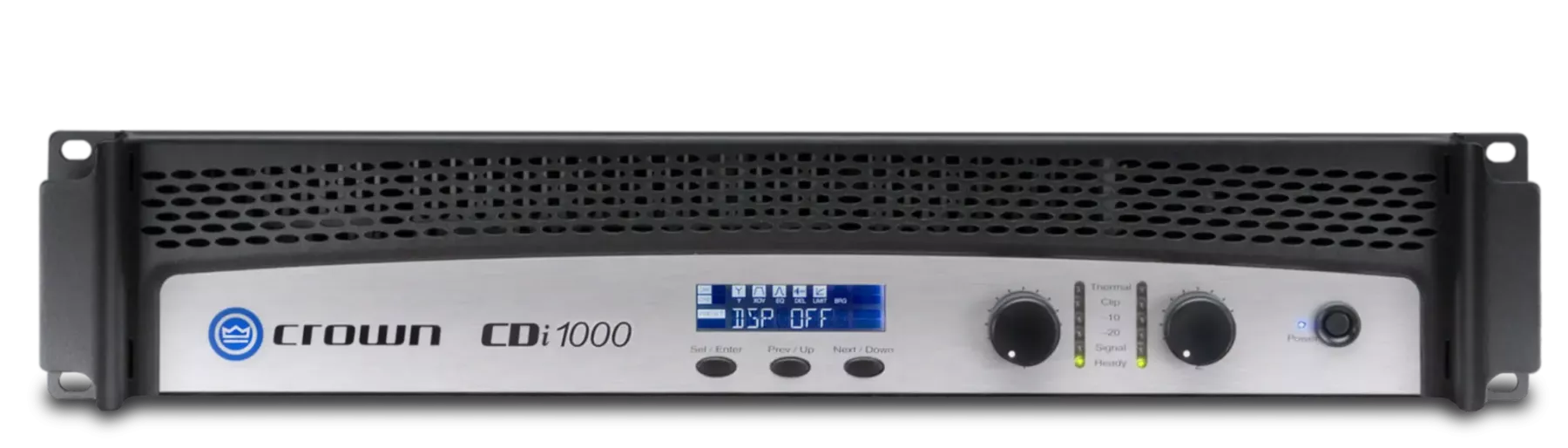 Crown CDi1000 є молодшою моделлю в серії CDi і оснащений вбудованим DSP-процесором, який дає змогу відмовитися від зовнішніх процесорів. Цей пристрій підтримує роботу з трансляційними трансформаторними лініями 70/140В, що робить його універсальним рішенням для різних звукових систем. Максимальна потужність підсилювача залежить від опору навантаження, що підключається: 700 Вт/канал за 2 Ом, 500 Вт/канал за 4 Ом і 275 Вт/канал за 8 Ом. У мостовому режимі Crown CDi1000 здатний видавати 1400 Вт при 4 Ом.