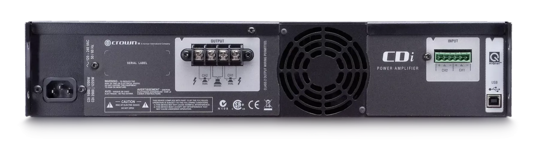 Підсилювач Crown CDi1000 пропонує безліч опцій для зручності використання. Це включає в себе можливість підключення до комп'ютера через USB для налаштування параметрів за допомогою фірмового ПЗ HiQnet System Architect. Така гнучкість дає змогу налаштувати підсилювач під будь-які потреби, чи то концертні виступи, чи то постійні інсталяції в залах і студіях.