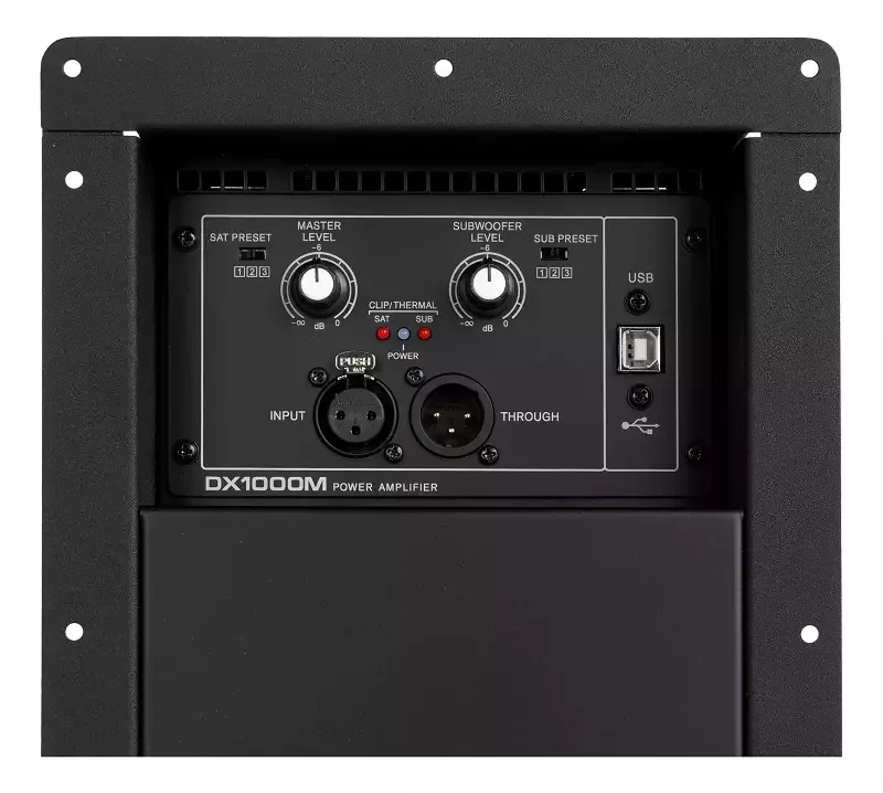 DX1000M DSP - професійний, вбудований двоканальний підсилювач (модуль) класу D з вбудованним DSP-процесором, призначений для установки в дво- або трисмугові акустичні системи в якості підсилювача сигналів звукової частоти. При цьому один канал модуля підсилює низькочастотний діапазон звукового сигналу, а інший - середньо- і високочастотний. Розділення сигналу на смуги здійснюється вбудованим кросовером.