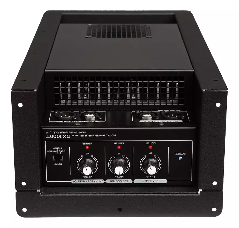 DX1000T - професійний, вбудований трьохканальний комбінований підсилювач (модуль) класу D, призначений для конфігурації: сабвуфер+два сателіти. Всі елементи модуля змонтовані на Г-образної конструкції з двох несучих панелей і закриті з тильного боку кожухом, який виконує захисні функції і забезпечує поглиблену посадку модуля в корпус акустичної системи.