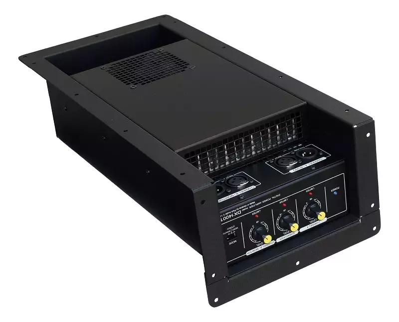 DX1400T - професійний, вбудований трьохканальний комбінований підсилювач (модуль) класу D, призначений для конфігурації: сабвуфер+два сателіти. Всі елементи модуля змонтовані на Г-образної конструкції з двох несучих панелей і закриті з тильного боку кожухом, який виконує захисні функції і забезпечує поглиблену посадку модуля в корпус акустичної системи.