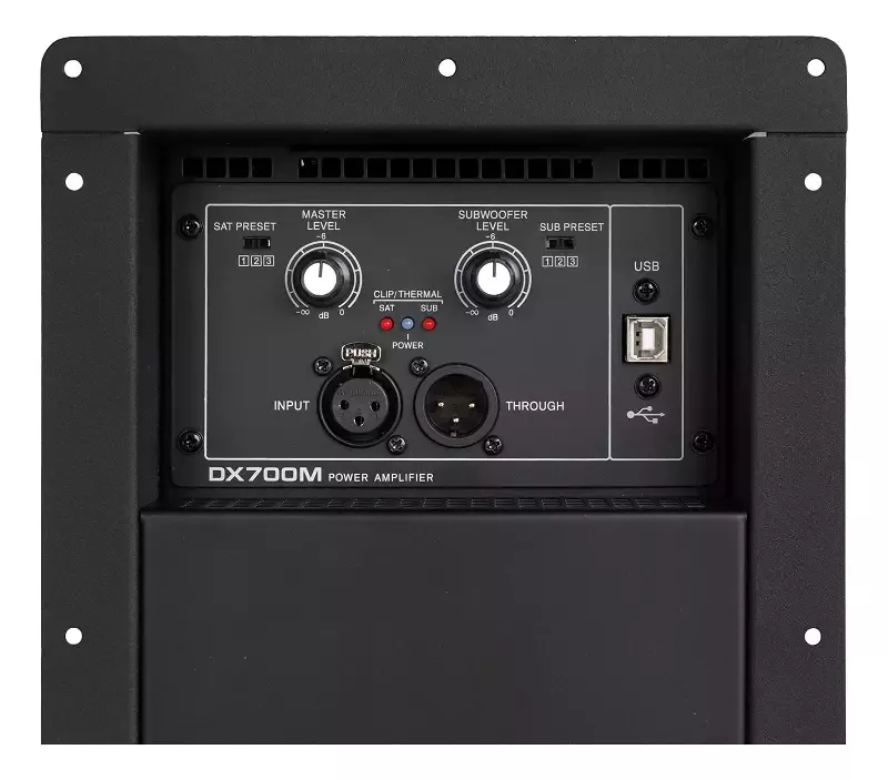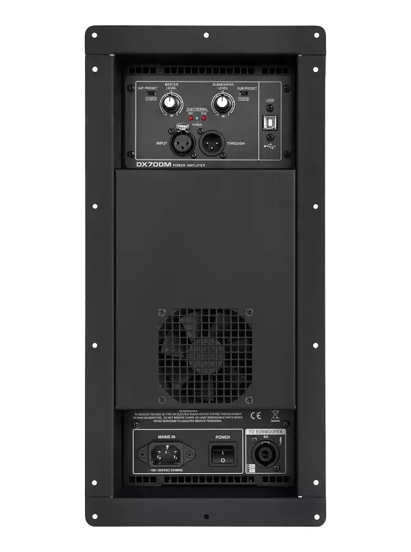 DX700M DSP - професійний, вбудований двоканальний підсилювач (модуль) класу D з вбудованним DSP-процесором, призначений для установки в дво- або трисмугові акустичні системи в якості підсилювача сигналів звукової частоти. При цьому один канал модуля підсилює низькочастотний діапазон звукового сигналу, а інший - середньо- і високочастотний. Розділення сигналу на смуги здійснюється вбудованим кросовером.