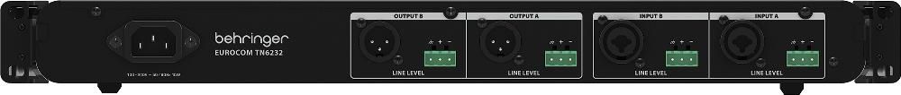 Двоканальний процесор-пригнічувач зворотного зв'язку Eurocom TN6232 Processor від Behringer створений для автоматичного придушення і відфільтрованого зворотного зв'язку мовлення і музики під час живого виступу. Він має 32-смуговий фільтр на канал, що може застосовуватися автоматично при виявленні зворотного зв'язку. Ширина смуги становить 1/126 октави.