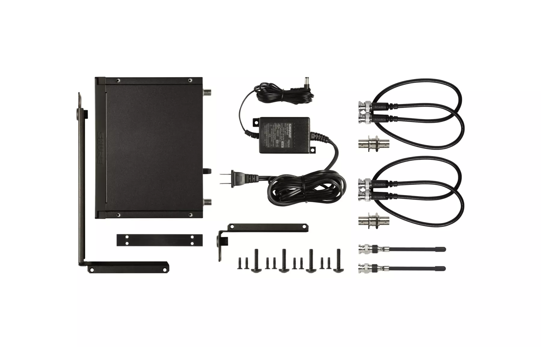 Комплектація: Комплект для монтажу, 3 кронштейни, 2 антени, 2 адаптери BNC, 2 кабелі BNC, блок живлення